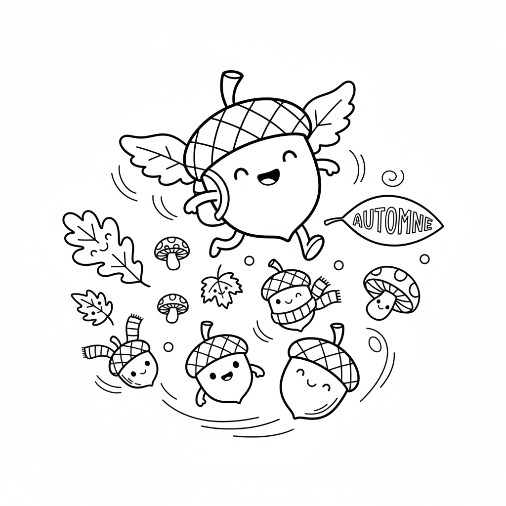 Notre sélection propose une grande diversité de styles pour satisfaire tous les profils de petits artistes en herbe. Vous découvrirez des glands personnifiés avec des visages mignons et expressifs qui plairont énormément aux élèves de maternelle. Ces dessins ludiques transforment un simple fruit de chêne en un véritable petit personnage de conte de fées, rendant l'activité encore plus interactive et amusante pour les plus petits.